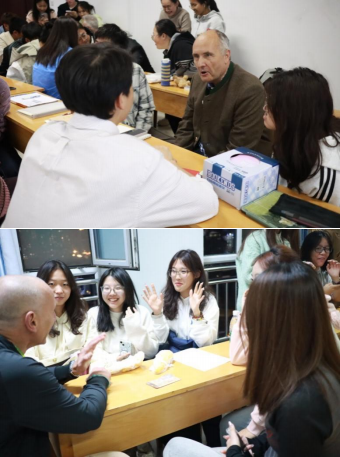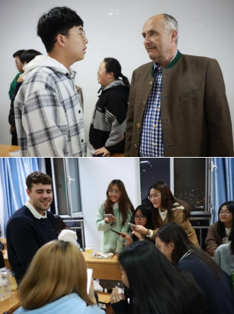 最后,在第四环节中,同学们被分成若干小组,每组分别与在场的外教进行互动交流。外教们耐心地解答同学们的问题,与大家一起练习口语,分享学习德语的经验和心得。这一环节不仅让同学们有了与外教面对面交流的机会,更让大家在实践中提升了口语水平。