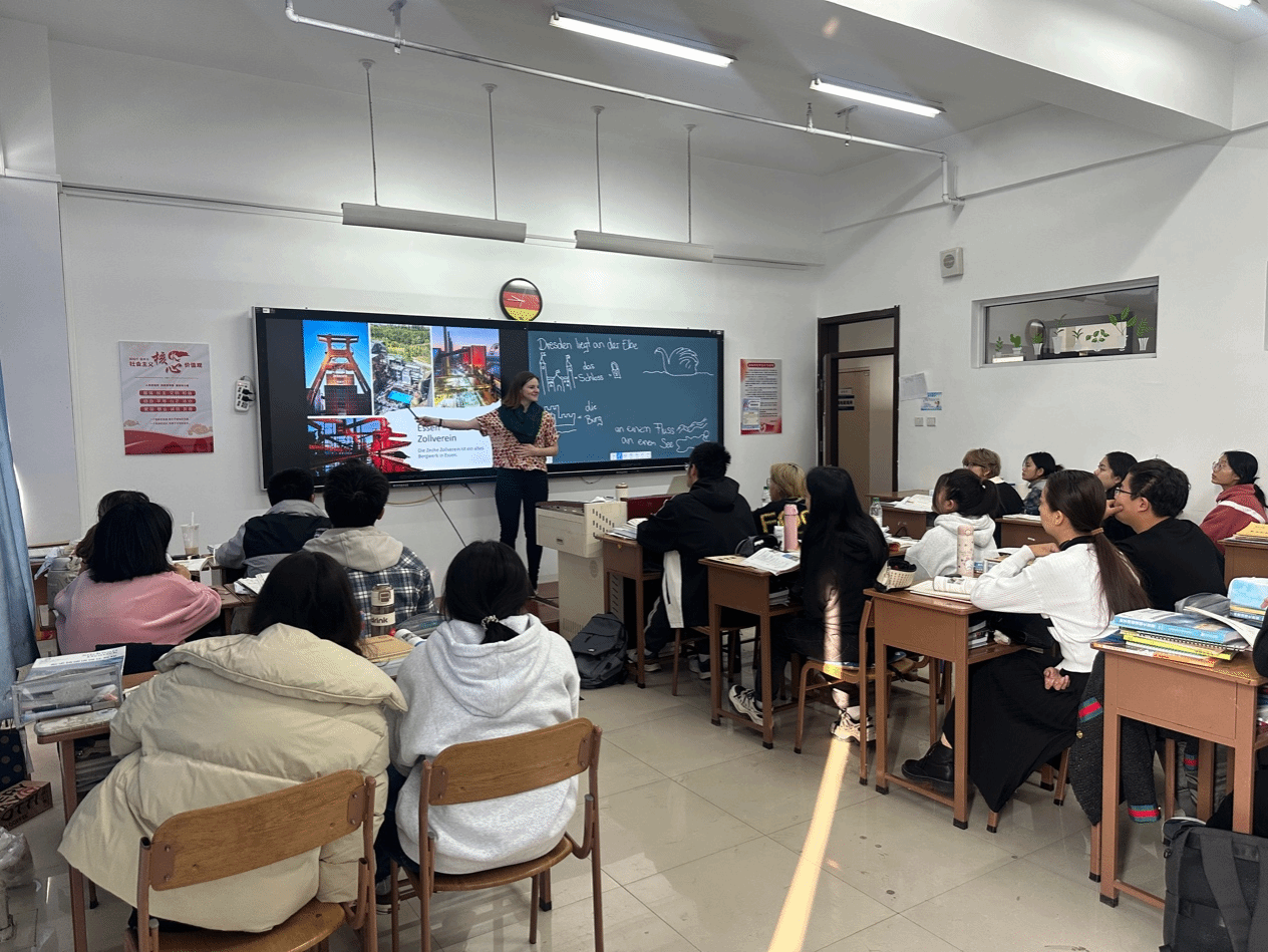 此次外教进课堂活动,拉近了学生与外教间的距离,激发了学生对德语学习的兴趣,营造了良好的德语学习氛围。今后,新葡萄官网将持续加强与德方教师的交流研讨,为学生们提供更广阔的国际视野,切实提高新葡萄官网教育教学质量,助力中德学子与德语共舞,追梦不止步。